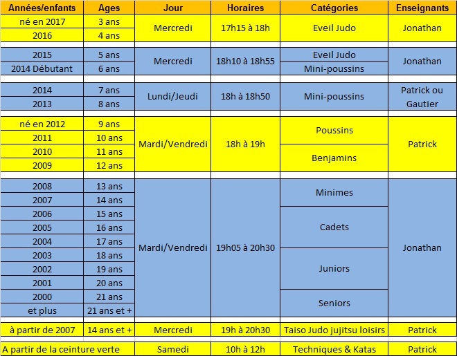 HORAIRES COURS SAISON 2020-2021