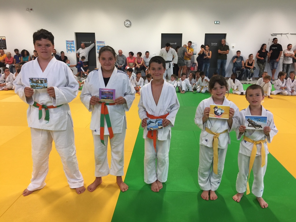A l’occasion de la cérémonie de remise des ceintures, Jonathan et Patrick ont procédé au tirage au sort des 5 cartes postales sur les 50 reçues au club durant l’été. Les heureux gagnants sont Noémie Amourette, Mathys Devaire, Ronan Dupuy, Clara Aujard et Mathis Lamon. Ils se verront remettre dans les prochains jours le tout dernier tee-shirt collector aux couleurs d’Aureilhan Judo, Félicitations à tous les 5, merci aux parents qui ont financé l’affranchissement et l’achat de la carte, 100% des gagnants ont envoyé une carte ! et à l’année prochaine pour le jeu de l’été 2019.